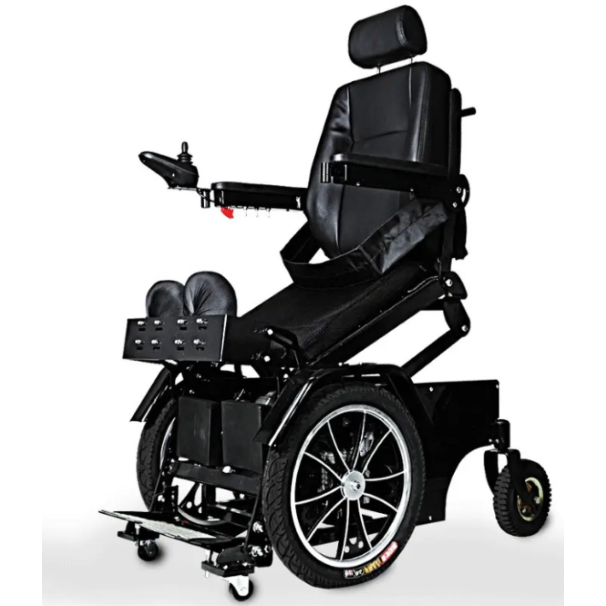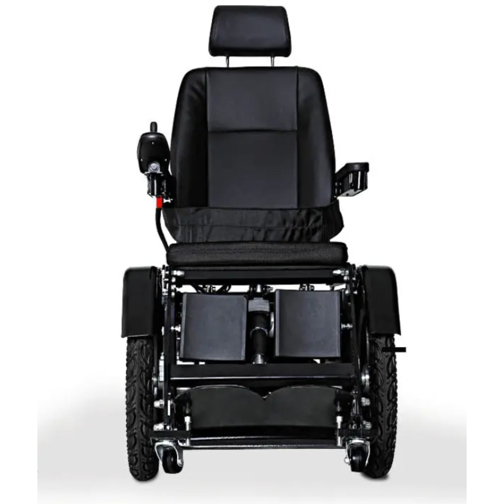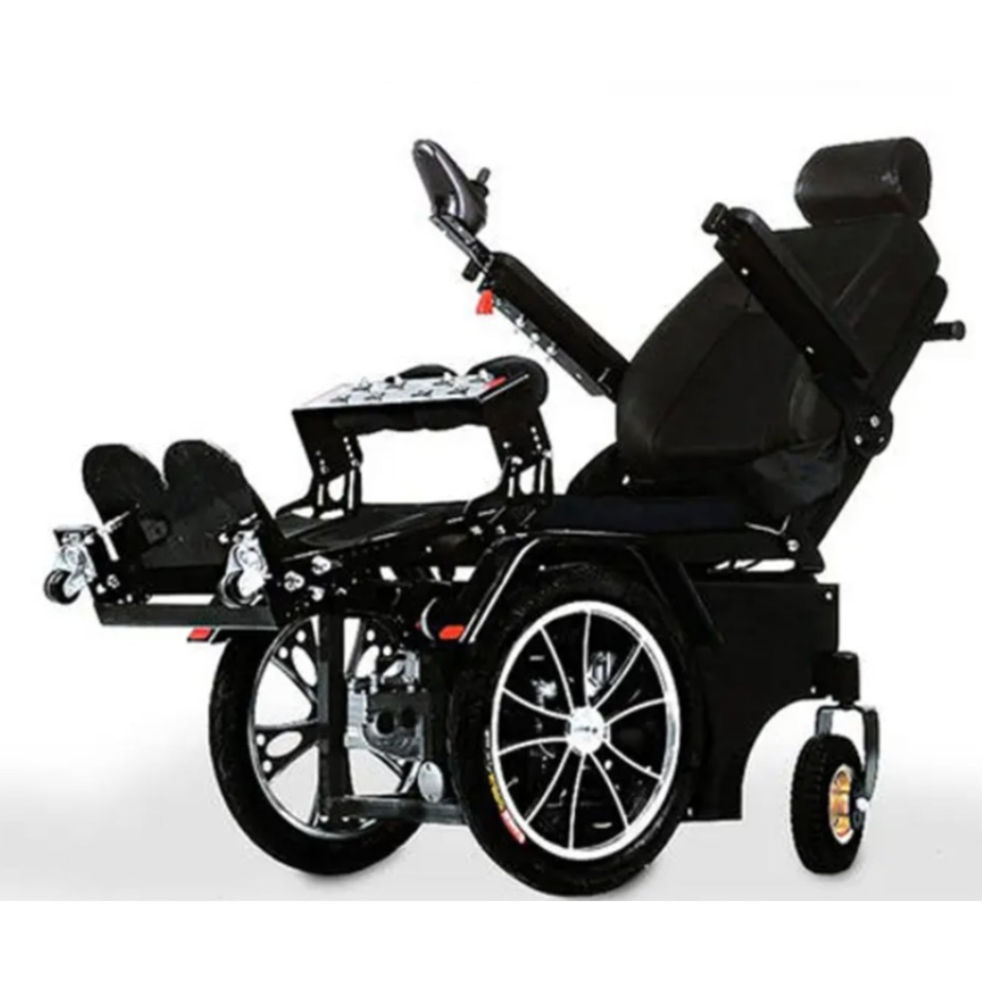 The TitanElite Recliner Electric Wheelchair is a high-end, fully adjustable mobility solution that offers maximum comfort and advanced positioning features. With its fine leather upholstery, reclining backrest, and adjustable footrests, this chair provides superior relaxation and ergonomic support. Powered by dual 600W motors, it delivers smooth performance and effortless mobility, making it perfect for those who need a combination of support, independence, and luxury.